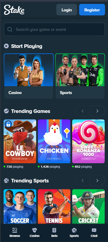 This is not the official website of Stake casino and sportsbook. On this site, you will find my experience playing at Stake Casino and betting. I will also provide detailed information about registration, deposits, withdrawals, and other details that you may need help with when using the site or mobile app.
